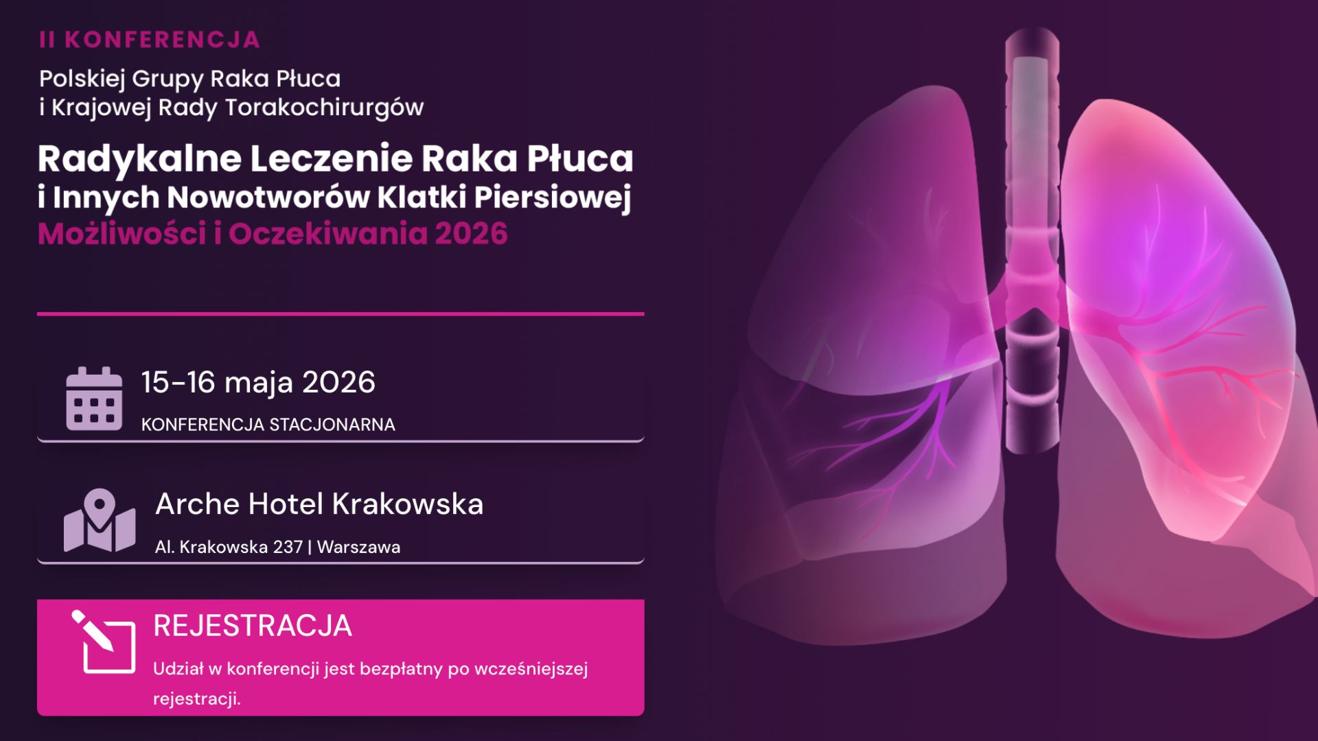 Działając każdy w swojej dziedzinie, mieliśmy uczucie niedosytu w zakresie podejmowanych wysiłków. Stąd też wzięła się próba integracji zainteresowanych środowisk w celu poprawy istniejącej sytuacji. Mamy świadomość i głębokie przekonanie, że dysponujemy dużym, nie w pełni wykorzystanym potencjałem, mogącym wnieść znaczący wkład w rozwój wiedzy na temat tego najgroźniejszego aktualnie nowotworu, jakim jest rak płuca.