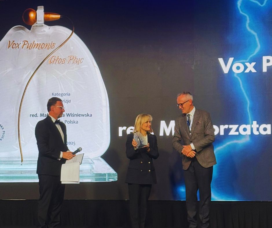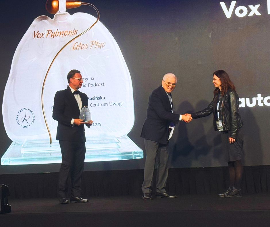 za stworzenie nowoczesnej, angażującej formuły rozmów, które w przystępny i merytoryczny sposób przybliżają widzom najważniejsze tematy współczesnej onkologii, w tym raka płuca. Podcast Pacjent w Centrum to przykład, że o zdrowiu można mówić z pasją, wiarygodnie i z szacunkiem dla perspektywy pacjentów i klinicystów. -